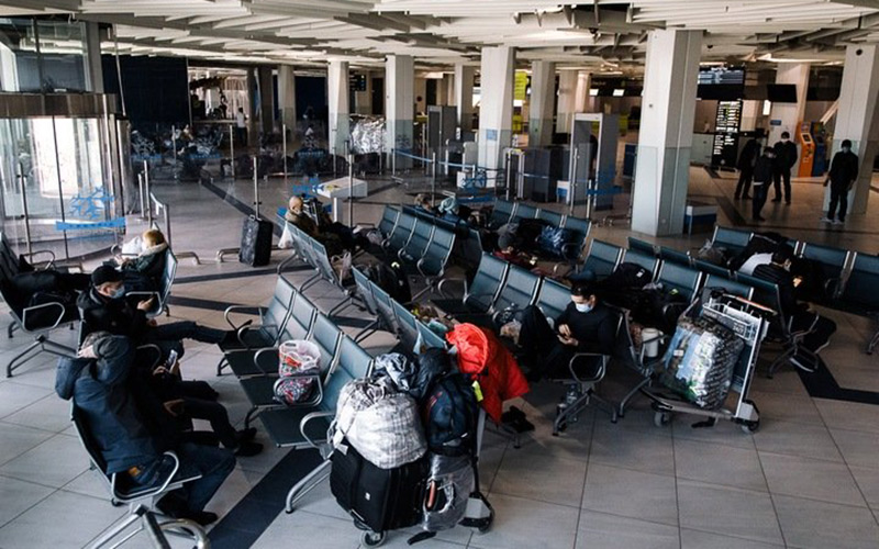 Бундан бир кун олдин эса Толмачёво аэропортининг раҳбарияти Россиянинг ички рейсларига авиачипта сотиб олмаган чет эл фуқароларидан аэропорт ҳудудини тарк этишни сўраган. Ўша фурсатда кутиш залида асосан ўзбекистонлик ва қирғизистонлик йўловчилар ўтиришган эди. Қирғизистон бош консулхонаси юртдошларини хостелларга жойлаштириб, етти кун яшашлари учун пулини тўлаган.