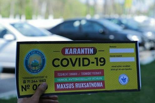 Ўзбекистонда 30 мартдан 20 апрелга қадар коронавирусга қарши кураш бўйича махсус республика комиссияси томонидан Тошкентда, Нукусда ва вилоят марказларида, шунингдек, Ўзбекистон вилоятлари орасида шахсий мақсадларда транспортда ҳаракатланиш тақиқлаб қўйилган.
