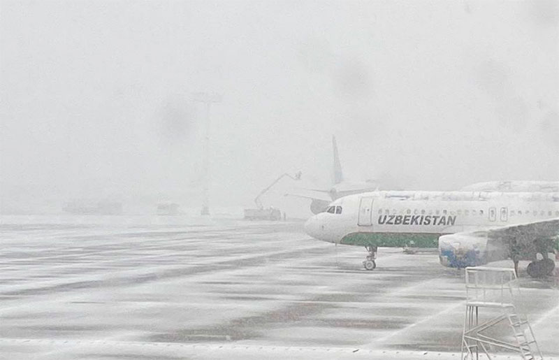 Учишга қадар барча самолётлар бортига музланишга қарши ишловлар берилиши кутилмоқда.